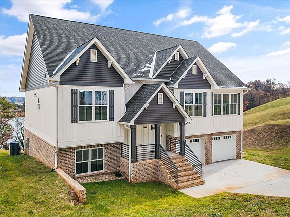 New Construction | Lake & Mountain Views | Dandridge, TN. Experience stunning views of Douglas Lake and Mt. LeConte from this newly built luxury home in Dandridge. Thoughtfully designed with high-end finishes, this open-concept plan features a spacious great room with a fireplace and expansive windows framing the lake and mountain backdrop. The chef's kitchen offers quartz countertops, custom cabinetry, and a large island perfect for entertaining. The main-level primary suite includes a spa-inspired bath with a tiled walk-in shower and dual vanities. Enjoy covered outdoor living areas, beautiful craftsmanship, and convenient access to marinas, restaurants, and historic downtown Dandridge—luxury lake living at its best.