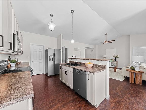 WOW, WOW, WOW!!! This Open floor plan ranch looks like a display home! It is Pristine! Fresh paint thru out! New fixtures! All kitchen appliances stay! Main Floor Laundry and washer & dryer do stay! Tasteful kitchen with 42' cabinets & new hardware, center island with sink and breakfast bar. Walk-in pantry. Breakfast room with sliding glass door out to oversized covered private patio with ceiling fan. You can sit outside all year round, if you'd like! The primary suite has full private bath with double basin vanity & large walk-in closet! Two more bedrooms with plush carpet, plus another full bath on the main floor! Basement has rough in plumbing for bathroom, plus egress window for bedroom and still tons of space! New roof in 2024. Don't miss this gem in convenient location.