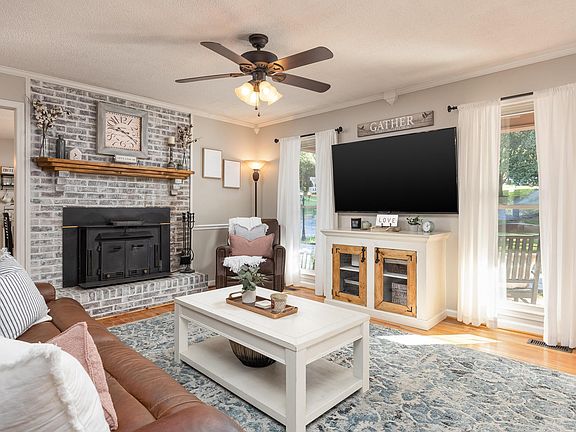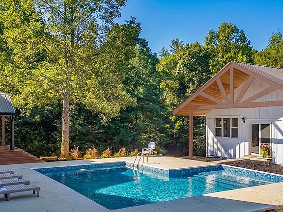 OVER 5 ACRES | POOL + POOL HOUSE | WORKSHOP | Nestled on over 5 private acres, this property offers the perfect balance of seclusion and convenience—just a short drive to the city, yet surrounded by nature and abundant wildlife. For those who enjoy hunting, gardening, or simply soaking in the peace of the outdoors, this retreat has it all. The main home welcomes you with charming hardwood floors and a classic brick, wood-burning fireplace that creates a cozy and inviting living space. This kitchen combines style and function with timeless subway tile, rich butcher block countertops, and a charming farmhouse sink. Abundant cabinetry and generous counter space provide plenty of room for storage, meal prep, and entertaining. The main-level primary suite is a true retreat with a walk-in closet and en suite bathroom featuring a tile walk-in shower and a soaking tub. A spacious bonus room with a built-in desk completes the upper level, providing flexibility for a home office, media room, or play area. The outdoor space is a true entertainer's dream. A large covered deck overlooks the backyard, leading to a beautiful saltwater inground pool and a new guest/pool house. This guest retreat includes one bedroom and bathroom, stainless steel appliances, butcher block counters, and its own private deck—ideal for hosting visitors, offering multi-generational living, or even short-term rental potential. The expansive pool area is designed for gatherings and entertaining, complete with space for lounging and enjoying the peaceful setting. A large 30x30 workshop with 900 sq ft of space, a 28x30 carport, and 2 car garage is ideal for storing equipment, tools, or recreational vehicles. A peaceful creek runs just behind the workshop, adding to the charm of the property. With its mix of modern amenities, outdoor beauty, and privacy, this landlocked property is ideal for those looking for a serene lifestyle in their very own private oasis.