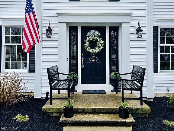 Welcome to 407 Lookout Court, just moments away from the shores of Lake Erie, and nestled upon a quaint cul-de-sac in Avon Lake’s Westwinds neighborhood! You'll instantly fall in love with the classic, crisp, and clean curb appeal of this beautifully renovated Colonial! The 2-story foyer boasts refinished hardwood floors that flow throughout the first floor, and a dramatic staircase with accented carpet runner. Charming black French doors lead to the home office, adorned with built-ins. The light-filled living room/den opens seamlessly to the formal and bright dining room, perfect for memorable family gatherings. The updated gourmet eat-in kitchen has been completely remodeled! It features detailed off-white cabinetry, large center island, black granite countertops, subway tile backsplash, and stainless-steel appliances! It opens to the bright and stylish family room offering a wet bar with granite sink, cozy gas fireplace, and gorgeous views of the backyard. The first floor also offers a large laundry room and convenient 1/2 bath. Upstairs you'll find a spacious master suite with walk-in closet, and renovated glamour master bath with his/her sinks, large soaking tub, and tiled shower! Three additional large bedrooms with generous closet space share a guest bathroom featuring double sinks and granite countertops. The versatile finished lower level offers a rec room, home gym, additional office space, or all of the above! It has newer flooring, a wet bar with granite sink, and ample storage space. The picturesque landscaping is the perfect backdrop for outdoor entertaining. You’ll love hosting guests on the stamped concrete patio, while letting the kids play in the expansive backyard. Westwinds residents enjoy access to a lively neighborhood pool, summer food trucks, and tennis/pickleball courts! It is adjacent to Lake Erie, close to Huntington Beach, and only 25 minutes to downtown CLE. Welcome to the Westwinds lifestyle!