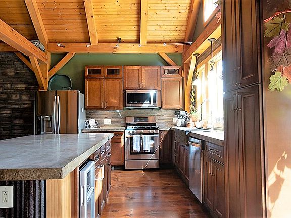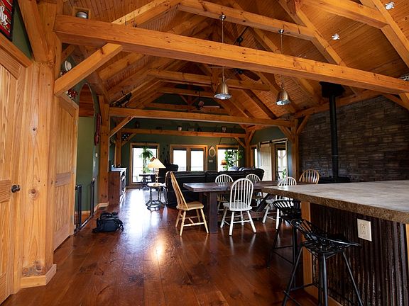 Unique - one of a kind custom hybrid timber frame home sits on 52+/- acres southwest facing and just 3 miles from the gaslit streets of Wellsboro PA. Enjoy the mountain views on the wrap around deck with over 1100 sqft of decking abutting the 1/4 acre stocked pond. Architecturally distinct, energy efficient and sustainable is the focal point of this unique one level timber frame home. House is built with a Structural Insulated Panel System (SIPS). The 22' living area ceilings featuring King Trusses leads to the 9' cherry wood barrel ceiling. Spacious kitchen featuring an 8' x 4' island with built in wine cooler, farmhouse granite sink and a separate walk in pantry. Open the barn door to the ample Master Suite with an 11' x 9' walk in closet. The master bath featuring 2 vanities, granite floors, travertine walls, walk in shower with river rocks and towel warmers. Great property for horses, farming and all season sportsman! Seller, Katherine Zavetsky, is a PA licensed realtor.