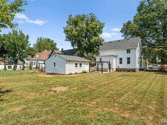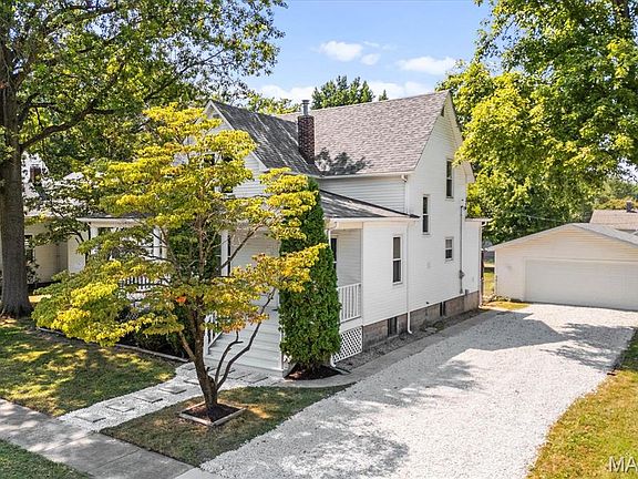 Captivating Folk Victorian home just blocks from the vibrant O'Fallon Downtown District is a must see! Step onto the inviting wrap-around front porch and through the front door into a grand entry foyer, featuring a stunning half-turn staircase that sets the tone for the home's historic elegance. The main level boasts soaring ceilings and an open flow, ideal for both daily living and entertaining. The well-appointed kitchen, complete with a convenient bar for seating, seamlessly connects to the dining room, which also provides access to the front porch—perfect for morning coffee or evening gatherings. Plus access to the living room with historic solid pocket doors for added privacy. A charming main-level half bath and laundry/pantry complete the main level. Second Level: three generously sized bedrooms and a large full hall bath. The exterior is as impressive as the interior, featuring new roof, updated siding, and a detached, oversized two-car garage. The expansive, fenced yard offers a private oasis for outdoor activities and relaxation. The unfinished basement provides ample storage and a Woods Basement Waterproof System. Living here means being part of a dynamic OFallon community, with restaurants, coffee shops, and shopping just a short stroll away. Schools: O'Fallon School District -Marie Schaefer (K-5) -Fulton (6-8) - OTHS (9-12)