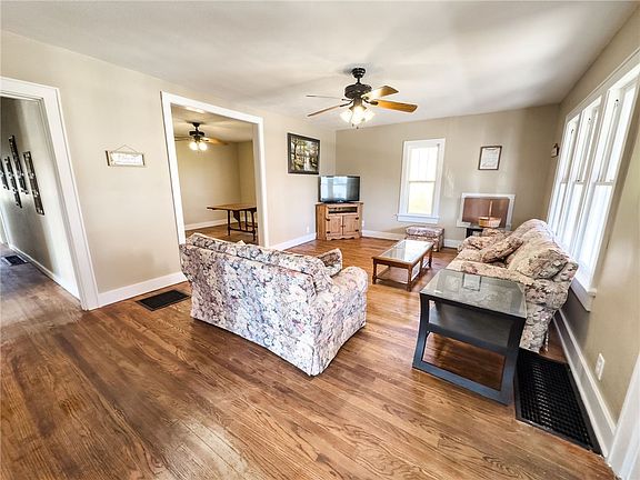 Charming and full of potential, this well-kept home sits on two spacious parcels, giving you rare extra breathing room right in the heart of town. A welcoming covered front porch spans the front of the home—perfect for morning coffee, evening relaxing, or decorating for every season. Inside, you’ll find original hardwood flooring, adding warmth and character throughout. The home offers three bedrooms plus a fourth flex room—ideal for a home office, guest room, playroom, or additional bedroom. A clean, unfinished basement provides great storage. Outside, the oversized lot gives you ample outdoor options—gardening, entertaining, play space, or simply enjoying the privacy that’s hard to come by this close to town amenities. Located just minutes from the Square, schools, restaurants, and parks, this property combines convenience with room to spread out. A wonderful opportunity for anyone looking to put down roots in Robinson!