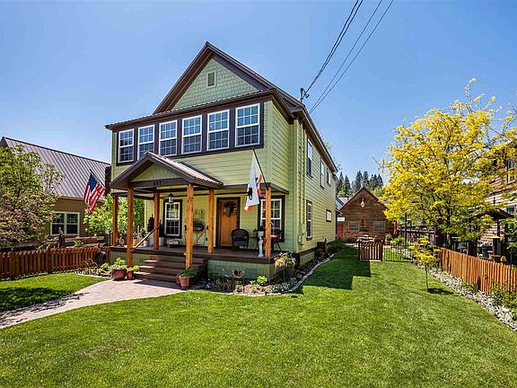 The historic qualities of of this magnificent home have been well preserved & meld beautifully with the many modern upgrades. Attention to detail is apparent throughout. New vertical grain wood floors flow through the main level of this 2-story McCloud Masterpiece. The living room boasts a wood stove complete with a hand carved, live-edge mantle. Added heat from a propane monitor keeps this home warm & cozy. The spacious kitchen boasts beautiful custom cabinets built to match the original McCloud style, with Quartz counters, a copper hood & GE Cafe Series appliances. The dining area is perfect for gathering with kith & kin with refinished wood walls & a built-in hutch. The downstairs master with ensuite bathroom has heated tile floors, new fixtures, double sink vanity & tiled walk-in shower. Upstairs adds a spacious family room area, refinished wood floors & accent wall, 3 bedrooms, a delightful bonus room plus a full bathroom w/original clawfoot tub & heated tile floor. A half bath & laundry room lead out to the covered back deck, where you'll find a paver patio with gazebo, side yard, fully fenced front yard & dog run. A garage & spacious shed round out this desirable property.