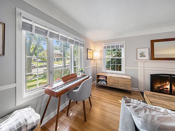 Warm, light-filled Wildwood Park cape cod offering modern updates w/ classic charm. Features incl. plaster cove ceilings, wainscoting, hrdwd oak flrs, lots of windows & built-in bookcases. Bright living room feat. a wood-burning FP. Modern kitchen w/ new white Quartz c'tops flows into dining rm. The 1st floor also boasts a bedroom, office/den (poss. 4th BR) w/ door to rear sunroom, & classic full bath. Upstairs find the sizable primary BR w/ access to 2nd flr balcony, 3rd BR, tiled full bath, & hallway landing lined w/ closets. Downstairs feat. rec. room, 2nd home office, 1/2 bath & laundry/mechanicals. Rear deck overlooks a lovely fenced backyard. 1-car garage & garden shed. Updated mechanicals, roof/gutters, generator. Popular neighborhood walking distance to downtown, schools & parks.