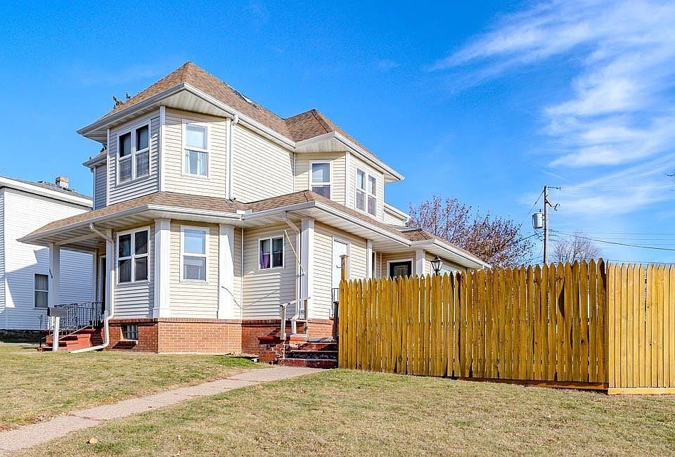 Own a piece of history with this charming 1900's built two family home. The home screams character with curved front, beautiful sun porch and some wood floors. This 2-family home a two-bedroom unit on the main floor and a one-bedroom unit on upper level. The basement is full, 2 car garage, fenced yard and great curb appeal. Perfect for owner occupied with upstairs income to help with the payment