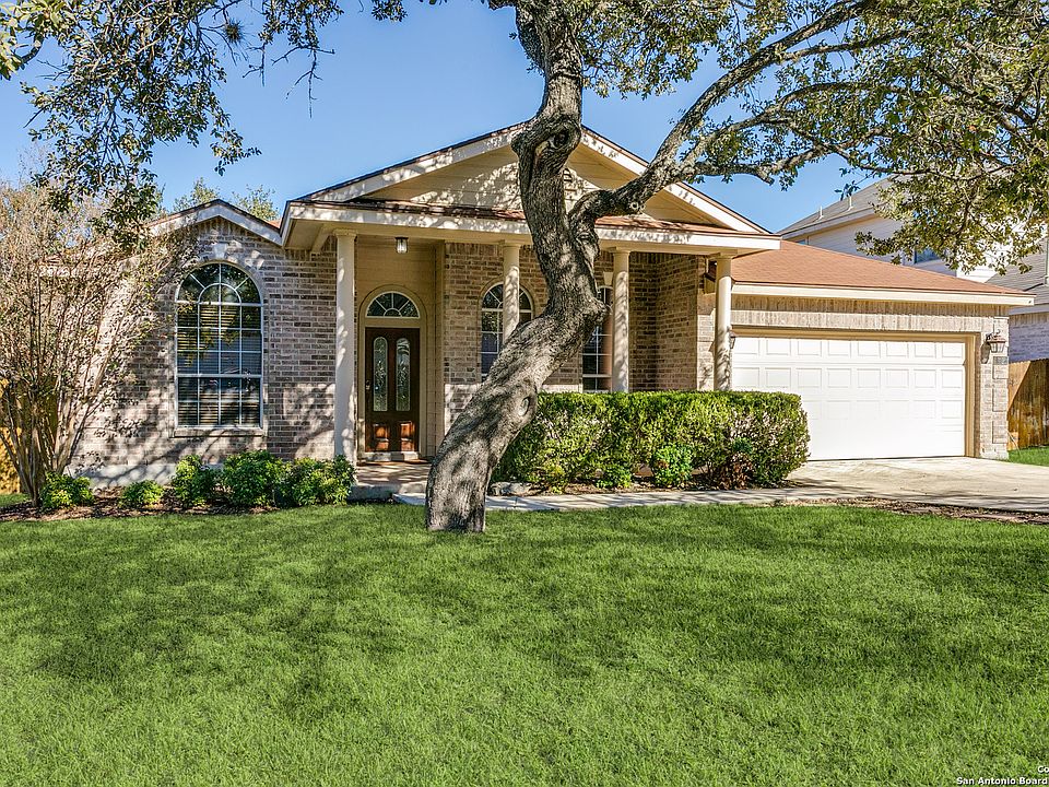 Tucked away in this quiet and desired neighborhood in the heart of Stone Oak you will find this beautiful single story home overlooking a greenbelt. The inviting unique floorplan offers 3bd plus office/study, 2 living areas with a cozy corner fireplace in the family room, 2 dining areas, wood, tile and laminate flooring, The large kitchen is the heart of the home with granite counters, gas cooking and ample cabinet and counter space. New HVAC System in 2024. The covered and uncovered patios invite to sipping your morning coffee or relaxing with a glass of wine at sunset. Exemplary rated schools to boot. Hurry and come see this gem before it is gone. Going once, twice...