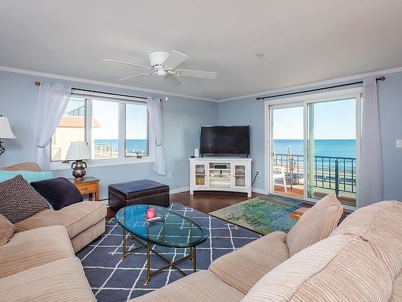 Immaculate oceanfront condo with direct panoramic views of Hampton Beach. This 2 bedroom, 2 bath end unit offers an open-concept floor plan and is completely updated and move-in ready. Stunning kitchen with quartz countertops, full stainless appliance package and tile backsplash. Large living area with unobstructed views throughout. Two spacious bedrooms offering plenty of closet space. Both bathrooms are updated with gorgeous vanities and tiled shower and tub surround. Crown molding, beautiful floors and recessed lighting throughout. The unit also comes with two parking spaces, one of which is a garage as well as a private locked storage unit on the first floor. Just a few minutes walk from both the beach entrance and the boardwalk, while offering easy access off the beach and into town and the highway.