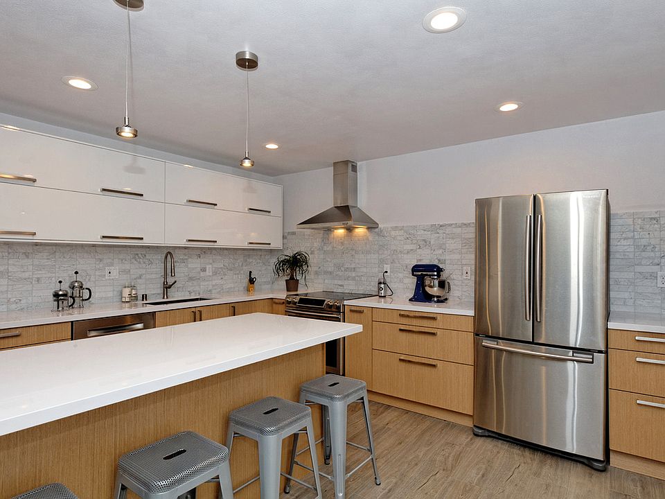 You'll love this spacious, open, & airy urban retreat, completely remodeled with high-end contemporary appointments, located in Oakland's trendy Adams Point neighborhood. At 945 sqft, this oversized one bedroom condo feels even more expansive due to the unit's open floor plan. Large eat-in kitchen has been tastefully remodeled with custom cabinetry, quartz countertops, Carrara marble backsplash, stainless appliances, large island with bar overhang & pendant lighting. Stylish high end grey laminate floors, and recessed lighting throughout the unit. Subway tile in shower, custom vanity, quartz countertop, & brushed nickel fixtures in bathroom. Plenty of closet storage space in hallway/entry & bedroom. Lovely balcony looking out to green treetops. 1-parking space. What a commuter's dream with close proximity to BART, local/trans-bay bus lines, casual carpool, & 580 freeway. Located near Whole Foods, Lake Merritt, Piedmont Avenue, Grand & Lakeshore shopping districts. This special unit is a must see!