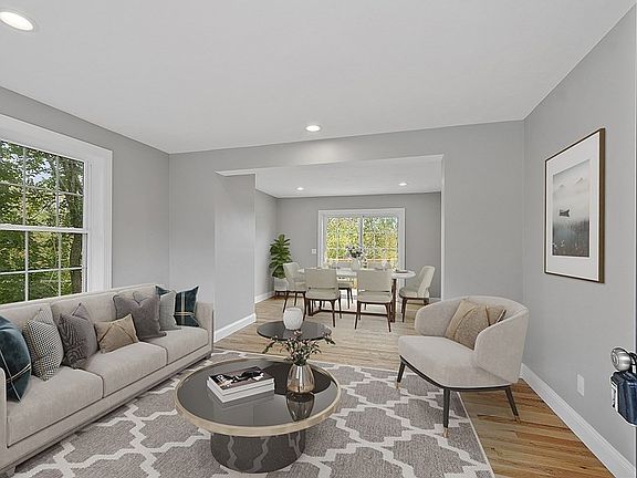 NEW CONSTRUCTION HOME WILL MEET AND EXCEED ALL YOUR NEEDS! Step inside and notice the bright and modern feel, bathed in natural light and neutral, on-trend colors. The white oak hardwood flooring is present throughout the whole home, including the second floor. The well appointed kitchen has upgraded SS appliances, white shaker cabinets and sleek Quartz countertops. The gorgeous lighting in the eating area offers texture and warmth for a curated feel. The great room features cathedral ceilings, shiplap fireplace and wonderful views from every window. A front to back living/dining area affords both flexibility and access to the deck, which overlooks the absolutely private yard. The second floor is home to 3 bedrooms including the primary with its stunning en-suite bath as well as a thoughtfully planned secondary bath. The walk out lower level offers room for future expansion and is home to the 2 car garage. Beautifully presented and ready for its new owner! WELCOME HOME!