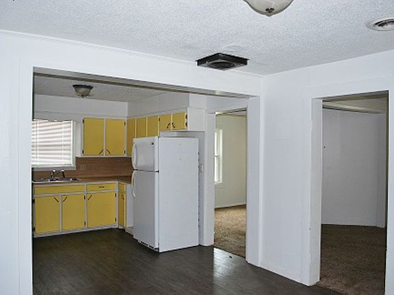 Move-in ready home at an affordable cost under $60,000? Needs some updates, but you can move in and do those later when you choose. A bit of paint would change the appearance quickly, so don't let that stop you from viewing this home. This 2 bedroom/1 bathroom home is ready for YOU! It sits on a corner lot and has a nice yard for your family to enjoy the outdoors or plenty of room for you pets to play. Kitchen has butcher block counter tops, gas range, and refrigerator. Dining room opens to the kitchen but could have a closet added and made into a 3rd bedroom, if needed. Big bathroom with fiberglass surround tub/shower combination, vanity with extra counter space, and a small linen closet. Large laundry room for extra storage. Vinyl flooring throughout kitchen, dining room, and laundry room. Carpet in the bedrooms. Ceramic tile in the bathroom. You'll want to call this "Home-Sweet-Home".