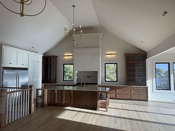 Every inch of this home was professionally designed with luxury in mind, showcasing high-end cabinetry, designer lighting, custom tile, and premium plumbing fixtures. The chef’s kitchen impresses with Taj Mahal quartzite countertops, custom cabinetry, vaulted ceilings, a handcrafted hood, a 60-inch professional range, and a matching 60-inch refrigerator.