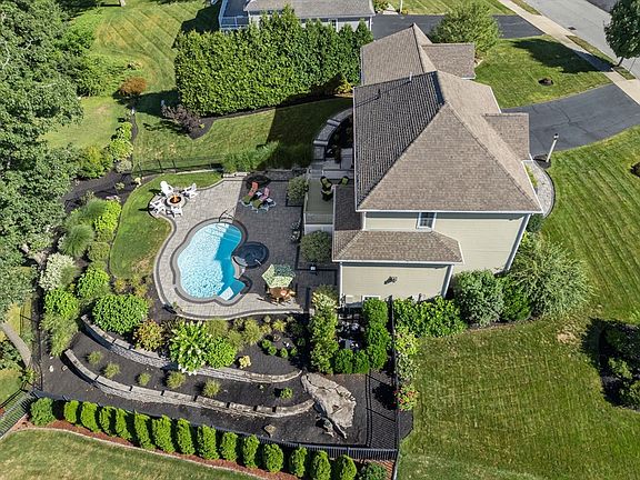Welcome to this impeccably maintained 11 room 6 bedroom, 2 1/2 bath Colonial-style home on Shining Rock Golf Course! This elegant home boasts classic charm with many updates, offering a spacious and versatile layout perfect for modern living and entertaining. Step inside to find beautiful hardwood floors throughout. The center-island kitchen with dining area flows seamlessly into the cozy fireplaced family room. Upstairs the primary suite offers a serene retreat with an en-suite bath and 2 walk-in California closets. Completing this floor are 3 additional bedrooms and a full bath. The lower level features 2 additional bedrooms and a walk out game room to the lighted pool area with waterfall, patio, fire pit and picturesque views of the 3rd tee on the golf course. The attached 2 car garage features a work area and extra storage.