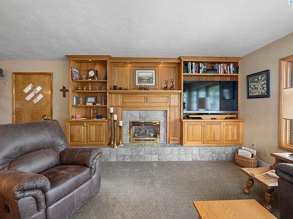 MLS# 284309 Charming Mid-Century Brick Home – Immaculate & Low Maintenance.Welcome to this beautifully maintained, all-brick single-level home that perfectly blends timeless character with thoughtful updates. This 2-bedroom + den residence offers exceptional curb appeal and has been lovingly cared for over the years, preserving its mid-century charm. Step inside to a bright and inviting living room featuring large custom picture windows with built-in mini blinds, a cozy gas log fireplace, and a stunning custom maple mantle with a built-in media cabinet as the focal point. The adjacent dining area flows seamlessly from the living space, creating a perfect setting for everyday living or entertaining. The spacious kitchen showcases original vintage details including tile countertops and birchwood cabinetry, along with clever built-ins such as a Murphy-style breakfast table and ample open shelving. A cozy den off the main living area features LPV flooring and a custom-built bookshelf or display cabinet with sliding glass doors. Both bedrooms are generously sized and include built-in closets and dressers, while the central bathroom retains its original 1950s tilework, adding nostalgic charm. Additional features include a large laundry room with a utility sink, a second bathroom, and direct access to the backyard. Outdoor living is a dream with exposed aggregate concrete bordered by brick inlays surrounding the home, a low-maintenance backyard with stone pavers, and artificial turf for year-round green and your own putting green. Enjoy relaxing or entertaining on the private patio. A insulated garage/workshop includes a half bath, attic storage, and is paired with a covered carport—ideal for extra parking, hobbies, or storage. There’s even a paved easement with room for a boat or RV. This home is a rare find—offering quality craftsmanship, excellent storage, and classic mid-century style with modern functionality, all in a low-maintenance package.