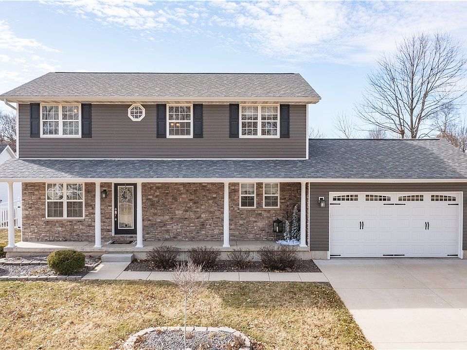 4 bedroom, 4 bathroom home with a full finished basement. This home has so many improvements including: new roof in 2020, siding, shutters and real stone front 2021, new stamped and stained concrete patio along with trex deck and stone pillars 2021, landscaping 2022 -2023. AC 2020, hot water heater 2019, kitchen back splash 2023, gutters and leaf guards 2021, quarts counter tops in the kitchen, island and cabinets with appliances. Main floor laundry. Lots of windows letting in natural sunlight. Two family rooms on the main level and bar and family room in the basement along with a great bonus room. Lots of storage space. Call to schedule your showing!