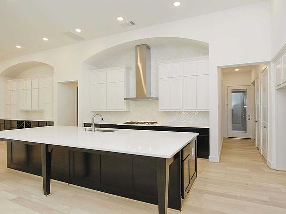 Family room opens to dining and island kitchen with hutch; white cabinets and countertops, and walk-in pantry. Stainless appliances with double oven. Wood flooring throughout main areas. Sliding glass doors at family room. Entertainment Room. Freestanding tub at Primary Bath. Walk-in closets all beds. Tankless Water Heater and Smart Home Technology. Sprinkler system.