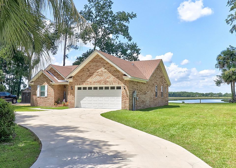 This is a beautiful home for you and your family to enjoy a full day of fishing, kayaking, and great times! This all brick home has a beautiful view of the Gress river. Private deep water boat ramp and dock. 3-bedroom, 2-bath home is currently being used as vacation rental. Property is over an acre and fenced with automatic gate system! New standing & floating dock with shower and cleaning station in 2021. Concrete BBQ / entertaining area. Unfinished room above 2 car attached garage