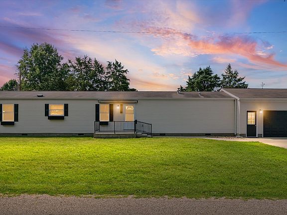 Come home to this meticulously maintained 3BR/2full bath ranch. It has been tastefully decorated and features an open floor plan that is perfect for nights cozied up by the fireplace or for hanging with the family playing board games. The kitchen features hardwood flooring, upgraded cabinets and countertops. New carpet in the LR and hardwood in the bedrooms and bathrooms. This property also has many new updates. New guttering, BRAND new garage door opener and Central AC unit, new storm door, insulated 2-car attached Coachhouse garage that has been equipped with an AC/heater combo, concrete drive, flower boxes, new coordinating exterior lighting, a storage building that adds extra space for treasures, & a new patio/fence for outdoor entertaining. Appliances stay. Located on an extra large corner lot on the edge of town where beautiful sunsets can be viewed....the BEST in the village, I've heard. Listing agent is related to the sellers.