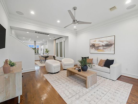 Freestanding, stylish, and right where you want to be in Montrose. Private driveway and large turfed backyard with covered patio make life perfect for easy living and effortless entertaining. Gather around the kitchen with generous counter space, island seating, upgraded appliances & dry bar. Expansive windows fill the interiors with natural light, while the lounge-sized balcony off the living room creates a seamless indoor-outdoor connection.Great open layout with high ceilings, hardwood floors, brick accents and modern lighting add warmth and character throughout. The primary retreat, features two walk-in closets and updated spa-inspired bath with a soaking tub, a heated towel rack, glass shower, and double sink vanity. Just move in and start enjoying Montrose living minutes from Buffalo Bayou trails, Eleanor Tinsley Park, Whole Foods, and neighborhood favorites like Bludorn. This home puts the best of Montrose right outside your door.