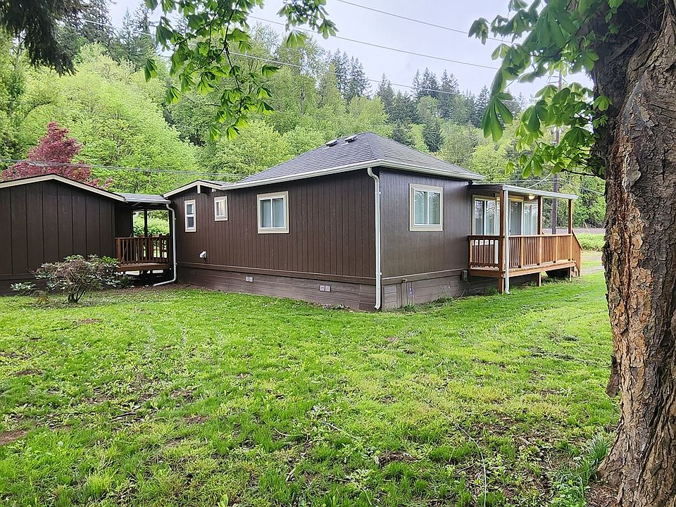 One Level 3 bed 2 bath home could be 4 bedrooms. One very large bedroom is separate from main house and has its own entrance. Only one neighbor and surrounded by county land so your lot feels much bigger. This home was just remodeled with new roof, windows, siding, flooring, plumbing, drywall, paint, etc. Upgrades include quartz counters, solid wood cabinets, solid interior doors, LVP flooring, color on walls, tile backsplashes and more. Two separate garages give you over 1,000 sq ft of garage space. Lot is laid out well for parking all your toys. Owner/Agent would lease back from an investor, but this quality rebuild is well suited for a homeowner.
