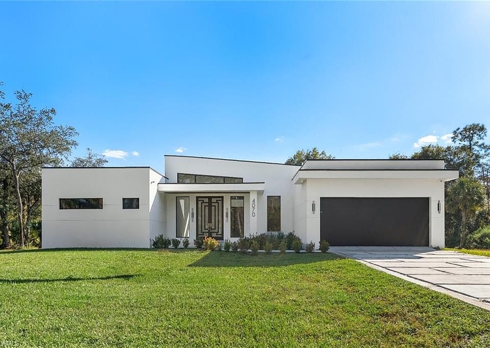 Stunning Custom New Construction in Golden Gate Estates! Experience luxury living on 2.73 acres with this brand-new, high-end custom home featuring 4 bedrooms and 4.5 baths. Designed with a modern open split floor plan, this residence showcases soaring 14-ft ceilings in the great room and a custom Italian-designed kitchen with panel-ready, top-of-the-line appliances. Enjoy year-round comfort with two central HVAC systems, and peace of mind with high-impact hurricane windows and doors, a full water filtration system, and a security surveillance system already in place. Inside, you’ll find solid wood doors throughout, quality, and timeless elegance. The home also features a spacious two-car garage with an epoxy-finished floor, a sleek flat roof with PARA pet protection, stem wall raised foundation wall built from reinforced concrete vs your typical concrete slab and thoughtful modern finishes throughout. This is a prime opportunity to own a beautifully crafted estate home in one of Naples’ most desirable areas. Survey, elevation certificate, and full plans are available for your review. Perfect for the buyer seeking space, style, and unmatched quality — welcome home!