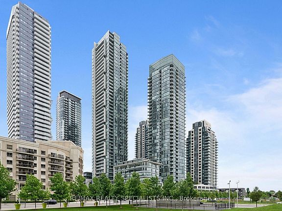 Welcome to the Grand Residences at Parkside Village where you can experience exceptional urban living. This beautiful unit features two bedrooms and two full bathrooms, thoughtfully designed with a split bedroom layout for enhanced privacy. Enjoy your mornings on the relaxing balcony with a cup of coffee. The full-size, functional kitchen is well-appointed with granite countertops, and a ceramic backsplash, perfect for both everyday living and entertaining. This unit also includes the convenience of one locker and a dedicated parking spot. Residents benefit from a 24-hour concierge service and an array of fantastic amenities located on the 4th floor. These include an indoor pool, media room, exercise room, fitness studio, music room, gaming lounge, party room, internet and fireside lounge, and a kids' playroom. Step outside to enjoy the outdoor park, offering a green escape in the city. The location is unbeatable, with just a short walk to Square One Shopping Centre. You'll also find yourself minutes away from major highways, bus terminals, the GO Bus, Sheridan College Campus, YMCA, library, Living Arts Centre, City Hall, Starbucks, convenience stores, and much more. Don't miss the opportunity to move in and enjoy all that this vibrant community has to offer!