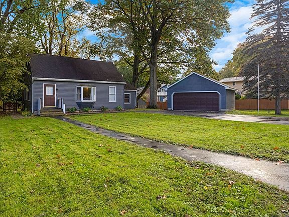 The first floor also includes a convenient laundry area, a full bath, and a versatile family room with a fireplace that could easily serve as a third bedroom. Upstairs, a charming loft bedroom awaits, accessible via a spiral staircase. The large two-car garage is heated and has electricity, providing ample space for storage or a workshop. Outside, the fully fenced backyard includes two McIntosh apple trees and a shed equipped with electricity and lighting, adding even more storage options.
