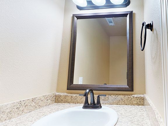 Walk-in closetNeutral color palletLarge privacy fenced backyardGorgeous countertopsDark mocha cabinetryDark bronze light fixtures