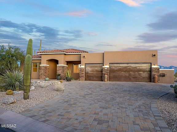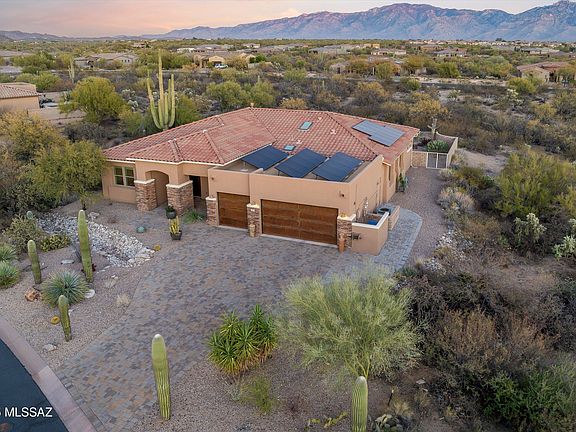 Savor your morning coffee while soaking in the stunning sunrise views of the Catalina Mountains. This residence offers breathtaking vistas of both the Catalinas and the surrounding desert landscape. Ideal for entertaining, the home features an open kitchen that flows into the great room. For your dinner parties, there is a formal dining area, and an oversized den perfect for sports enthusiasts or movie nights. The interior has been freshly painted, and the home is equipped with owned solar panels that currently cover the electric bill, as well as Pre-Wiring for EV charging capabilities in the garage. Additionally, you'll find it pre-wired for a hot tub in the backyard. The home includes 4 bedrooms, 2.5 bathrooms, and a 3-car garage, all set on a .9-acre lot.
