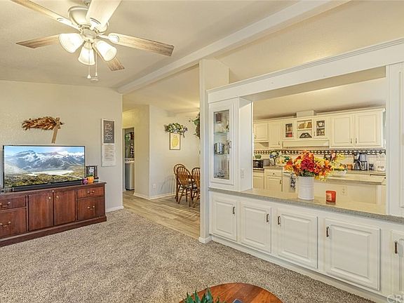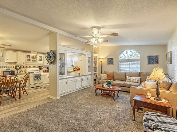 *** Enjoy affordable living in this charming and spacious 3 bedroom, 2 full bath, double wide manufactured home, featuring 1248 of living space with brand new wood grained laminate flooring and carpet throughout! What I love most is the open floor plan featuring a huge kitchen w/convenient center island and adjacent dining area with ceiling fan, both with white cabinets and appliances and plenty of storage space! The spacious living room boasts builtin cabinets and shelving, stylish ceiling fan and brand new carpeting. The indoor laundry room is a nice feature and comes with existing washer & dryer. The primary suite is complete w/private bathroom, over-sized corner tub and separate shower. Property has many great features such as covered carport, shed, gated rear yard and sizable covered front porch for gathering. The community includes a pool, tennis court, recreation room, clubhouse, RV park, private security & gated/guarded entrance. This manufactured home located in the highly desired West Palmdale Boulders at the Ranch 1 Community and will sell quickly!