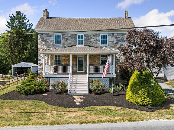 This Historic Stone Home situated on 3/10 acre was built in the1850's with walls 3 feet thick. All windows were replaced with Castle Energy Saver type windows that fold in for easy cleaning. They increase heating efficiency, give added comfort in the winter, and cooling in the summer with a Lifetime Warranty. The roof was replaced with an Architectural Shingles in 2018; chimneys were repointed and capped, and the front porch was built to fit the home nicely for friends and family to relax and take in the countryside and mountains. You can watch 4th of July fireworks on the Blue Ridge Mountains from the comfort of your front porch. Large Attic space is great for extra storage. There are other aspects of the home that you will want to enhance to fit your needs. A must see is the huge fireplace in the basement encased in stone and probably used for cooking and heating throughout the years. No HOA. The property is Unrestricted meaning you can pretty much do what you want with it. Downstairs in the basement is a Boiler Furnace which is which has been one of the best sources of heat throughout the years and pretty efficient. Woodstove is located on the main level for extra source of heat when electric goes out and was upgraded with a chimney liner. Come on out and see this charming home. Make it yours and enjoy it for years to come.