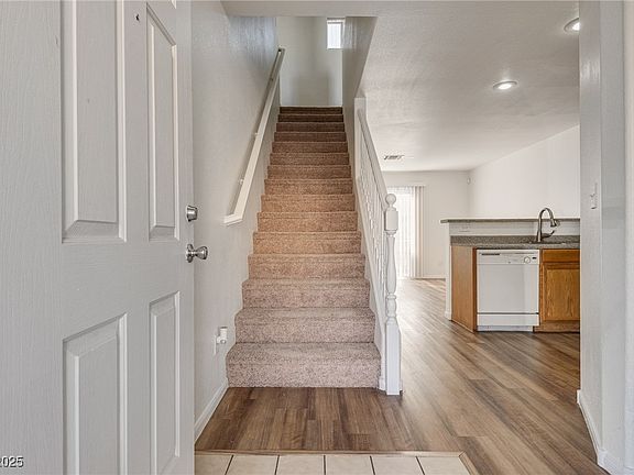 Beautifully updated and move-in ready, this charming 2-bedroom, 2.5-bath home is tucked inside a gated North Las Vegas community. The open-concept layout showcases fresh paint, stylish luxury plank flooring, and new carpet on the stairs. The bright kitchen features a breakfast bar and comes fully equipped with all appliances—including a full-size washer and dryer. Both bedrooms include their own private full bathrooms, while a convenient half-bath serves guests downstairs. The primary suite offers access to a private balcony, perfect for enjoying your morning coffee. Additional highlights include a freshly painted one-car garage with full driveway, a private fenced backyard, and a brand-new HVAC system installed in 2024. Now Available!