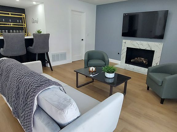 Attention Simi Valley guests. You will enjoy your stay at this beautifully remodeled 5BR Pool Home in a prime central Simi location! Great floorplan for multi generation or large family with 2 BR and a full bath downstairs and 3 large bedrooms and 2 full baths upstairs . It's thoughtfully furnished with all the amenities, 2 fireplaces and 2 big screen TV's. The rooms are all large with a great flow. Trendy yet comfortable, with high ceilings, a spacious chef's kitchen with oversized island, a family room with wet bar, and a resort-style backyard with pool, synthetic turf and built-in bbq--perfect for entertaining and enjoyment. The rooms are all large and the possibilities are endless. 3-car garage. Close to schools, shopping, parks and public services. Great neighborhood and best location in Simi Valley!