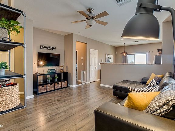 You will love this cozy 3 bed 2 bath home with private backyard (no houses behind you) and mountain views. This home is in pristine condition, with all new floors, new baseboards, newer appliances and newer paint inside and out and upgraded security screen door. Family room has wiring for surround sound. Garage has built in storage shelves and sink. Conveniently located! Take a morning stroll to Starbucks, or catch a workout or swim at the community center less than a mile away. Walking distance to Anthem Parks and Water Park, Community Center, grocery store, shops, restaurants Anthem Elementary & Boulder Creek High School.All this in the gorgeous Master Planned Community of Anthem featuring a 36,000+sq ft Community Center including Rock Climbing Wall, GYM, Heated Pools, Water Parks...