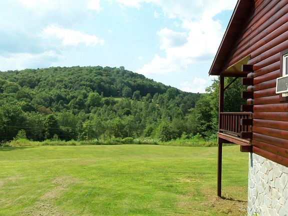 Owner Financing Possible! Stunning log sided home on over 10 acres, built with care by the current owner for his own family. A very private lot with ATV trails - perfect for the outdoor enthusiast or hunter. Enjoy the amazing views from the huge wrap around porch with a wonderful southern exposure, fish in the spring fed pond, or cozy up in the hot tub overlooking the valley. Large walk-out basementrecently remodeled. Great open floor plan, huge master bedroom w/ walk-in closet. Oversized garage with lots of room for your toys. This is the perfect get away or retirement home!