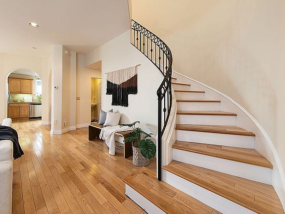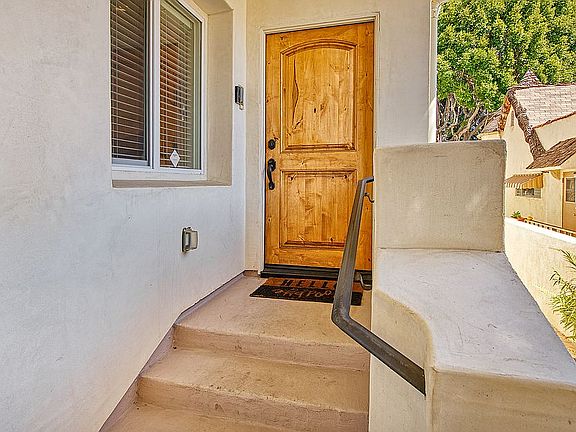 Immaculate townhome nestled on a quiet tree-lined street, yet less than 2 blocks from downtown Culver City. Unit is bright and spacious, with high ceilings and open floorplan. Living room has a gas fireplace trimmed with travertine and flows seamlessly into the dining area, which opens up to a patio with space for seating and BBQ grill. Kitchen boasts granite countertops, quality wood cabinetry, and stainless steel appliances. A beautiful curved staircase leads to a large upstairs landing area with skylight, which is perfect for a home office, lounging area, or exercise space. Both bedrooms are upstairs and have large walk-in closets. Master Bedroom contains a luxurious ensuite bathroom with soaking tub, separate stall shower, private "water closet," double sinks, and ample counter space. Laundry area is also upstairs, conveniently located between the bedrooms. Private direct entry 2-car garage has additional large walk-in closet, built-in cabinetry, and space for a work bench. Other features include hardwood floors, cozy carpeting in bedrooms, recessed lighting, double-pane windows, central heating, and air conditioning. Building is newer construction, and only contains a total of 8 units. Ideal location within walking distance to Culver Steps, One Culver, theaters, shops, restaurants, art galleries, schools, and parks.
