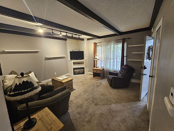 There is a King size bed frame (bring your own mattress) with optional bed risers for additional storage under bed, Full size couch, recliner, and tv. All kitchenware, pots, pans, glassware, etc. and kitchen table with chairs included. A deep storage closet for all your winter gear. The 2 parking spaces are deeded to condo, these are not common spaces, so it alleviates parking concerns and is steps from your back door. Unit has both a front and rear door to the exterior.