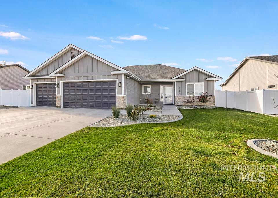 Welcome to 4073 Williams Street, a better than new, thoughtfully designed 3-bed, 2-bath home offering 1,596 square feet of modern comfort in charming Buhl. The gourmet kitchen features a 9-foot quartz island, generous pantry space, attached to an ample dining area. The kitchen is open to a bright, functional living area. Enjoy outdoor living year-round with a covered front porch, covered back patio, and a full landscape package with automatic sprinklers and vinyl fencing for easy maintenance. A 3-car garage provides plenty of storage and the spacious lot offers room to grow. A beautiful blend of style, convenience, and small-town living.