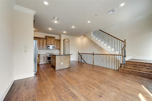 High end finishes in a premium location minutes from 635 & DNT complete with hand-scraped hardwoods, granite surfaces, stainless appliances, & fresh carpet installed August 2020. Ground floor features an oversized bedroom with full bath, perfect for home office. The second level host the master suite, kitchen & dining. On the top level you will find a generous sized living room & 2 additional bedrooms. The 3 rear bedrooms have private balcony access. Community has a gorgeous pond & connects via a recent trail extension to the Brookhaven & Vitruvian Park trail network. Oversized two car garage. HOA manages all exterior maintenance including roof & reduces the homeowners insurance. Best value in the area!