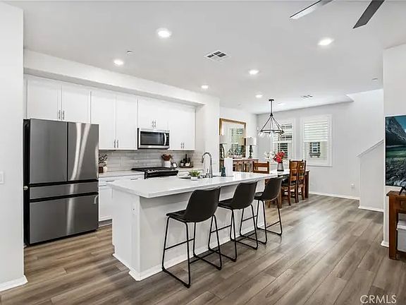 Welcome to this beautifully designed 2-bedroom, 2.5-bathroom condo. The perfect blend of comfort, style, and efficiency. Spanning three spacious levels, this home features an open floor plan ideal for both everyday living and entertaining. The expansive kitchen is a chef's dream, complete with quartz countertops, generous cabinetry, and a seamless flow into the dining and living areas. Enjoy your morning coffee or unwind after work on your private balcony, offering a perfect indoor-outdoor lifestyle. Both primary & secondary bedrooms include well-appointed en-suite baths and ample closet space. While the first floor offers flexibility for a home office. Additional highlights include a full-size 2-car garage with direct access, very low energy cost due to SOLAR PANELS especially compared to properties without solar or a corporate apartment complex. This home is located in Heirloom Farms, a well-maintained community close to shopping, dining, commuter routes, and is walking distance from Harveston Lake. The location is fantastic, just blocks from the I-15 and 215 Freeways, without the hassle of extended commutes further east of I-15. This home is also near the Promenade Mall, Temecula Schools, and close to the Temecula Wineries.
