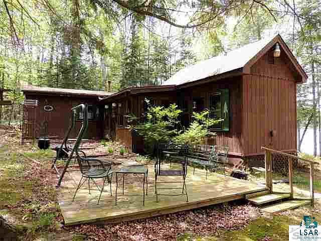 Single level, super clean cabin with lots of north woods style. Living room fireplace, lakeside porch, wood panel and beam interior, plenty of west-facing lake views. Extras include sport-size laundry tucked in bathroom, t-dock with benches, and storage shed. Sand/beach shoreline - clear water lake. Beautiful setting in Nat'l Forest about 17 miles from Cable.