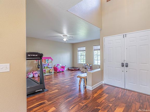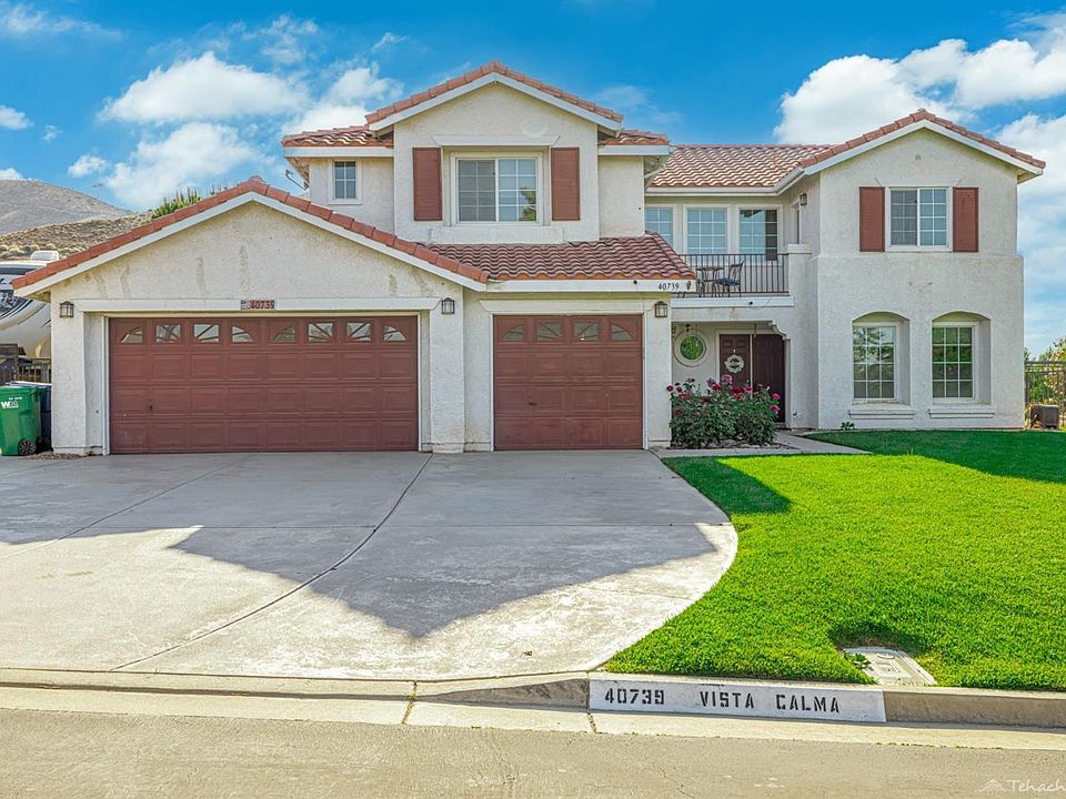 Welcome to this beautiful pool home on the prestigious gated community of Bella Vista.Sitting on almost half an acre and nestled in the hills of West Palmdale, this home features 3 beds (one conveniently located downstairs) 3 baths, receiving room, a loft/office area upstairs, high ceilings and beautiful hardwood floors through out.The master suite is conveniently located on one side of the house offering you complete privacy. It offers spacious walk in closet, separate shower and tub in the bathroom with it's own door to a private balcony perfect to enjoy your morning coffee or wine down in the evening. Private access from the bedroom to your deck to overlook the picturesque desert sunsets.An elegant catwalk connects you to the other side of the home where the loft/office space is located which also has private access to the deck. A full bathroom and oversized bedroom complete this side of the home.The side to side deck on this home gives you the perfect view to overlook a gorgeous back yard which is truly an entertainers dream! With a pristine pool and spa to enjoy the summer, an adorable octagon gazebo, a gas BBQ area and your very own private vineyard, you will not have to go on vacation to truly relax when it is all right in your home.