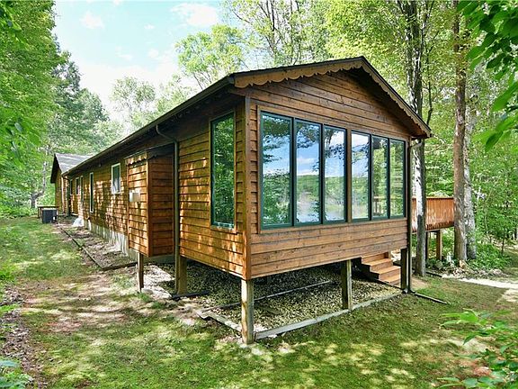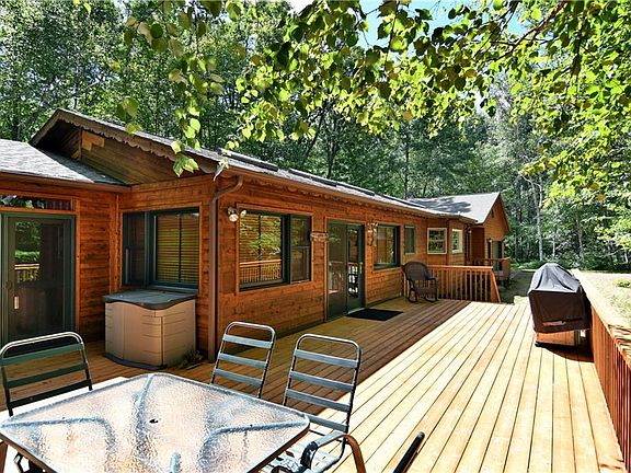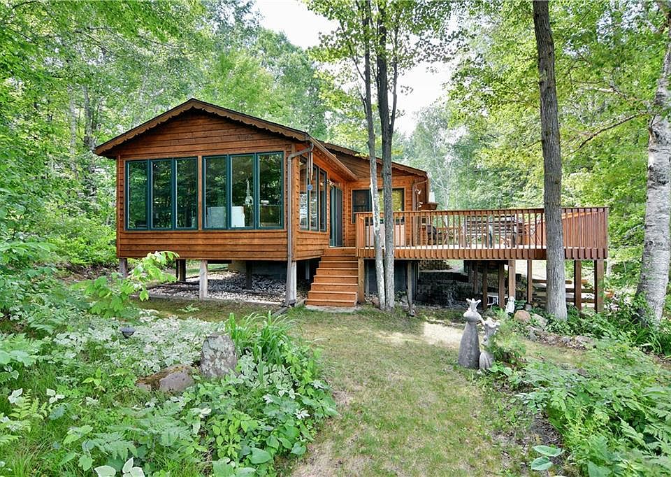 Sprawling northwoods home on crystal clear Deep Lake, a 43 acre no wake lake perfect for those who seek a peaceful setting. This high quality home is fresh and clean, and offers main level living with spectacular views from every angle! Bright and open concept living spaces feature vaulted ceilings, large kitchen equipped with built in range/island and peninsula, informal dining area that walks out to the massive deck, and a large lakeside 4 season room with gas fireplace. Other highlights include spacious master suite, office, main floor laundry, and attached garage. The lower level is mostly finished and features an additional bedroom and bath for your guests as well as a room that was once used as a studio for an artist! Walkout leads to a gentle slope amidst mature trees and 200' of shoreline on this pristine lake along with plenty of lakeside yard for your outdoor enjoyment.