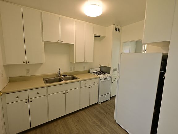 The complex has laundry on site and plenty of nice landscaping with grass and palm trees and common area picnic table. The complex has 12 units, mainly consisting of one bedroom units and is quiet. Parking is on the street however garages can be rented when they become available.