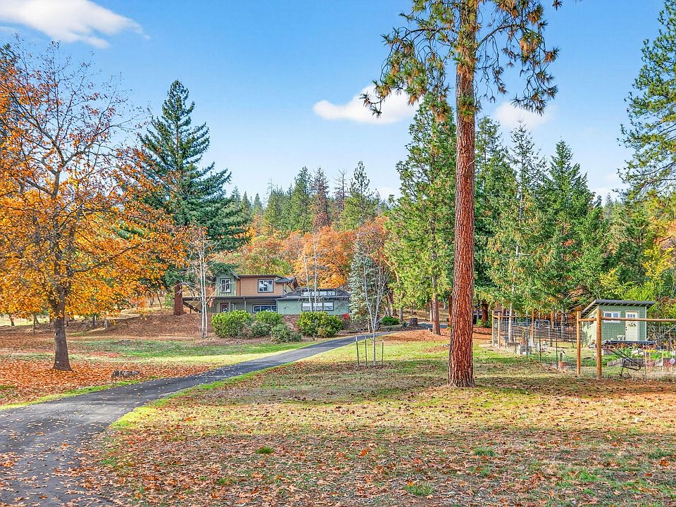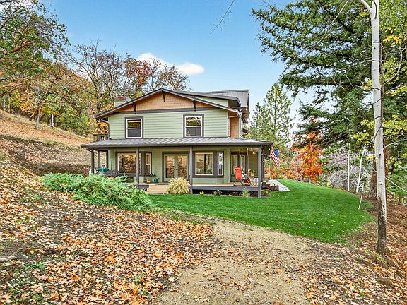 You will be so impressed when you tour this incredible West Hills property. A 7.01-acre retreat, perched on a hill close to J'Ville with breathtaking VIEWS of the valley, Mt. McLoughlin, and Roxy Ann. Privacy with a view! This warm, inviting home has been thoroughly and tastefully remodeled and updated from stem to stern. Gorgeous high-quality finishes, vaulted ceilings upstairs, and plenty of space. A blending elegant and rustic, a true NW style home. The open concept living area features a wood-burning fireplace framed with a local rock surround and a natural wood mantel. The kitchen features a hammered copper farmhouse sink, sage green cabinets, quartzite countertops, and premium appliances, including a GE Café French door double wall oven. Primary suites, one on each level, provide comfort and flexibility. This property offers so much!