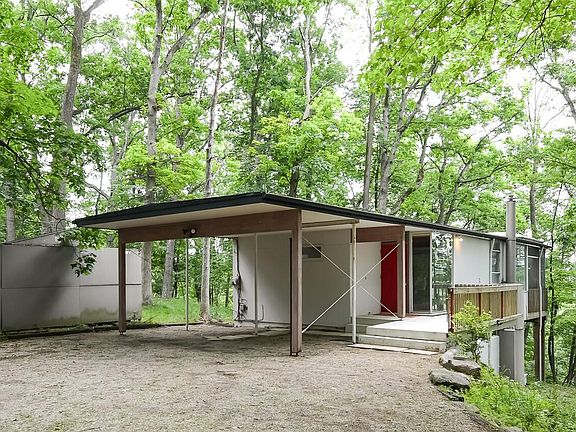 OFFERS DUE BY 6PM 6/22. OPEN 6/21 1-4. Mid-century charm meets modern functionality in this open floor plan home filled with natural light. This mid-century marvel sits upon 2 plus acres overlooking the Huron River. The home was designed by modernist architect William Muschenheim in 1960 for the Rutledge family. The vintage kitchen blends architectural details with artful living, while the first-floor study or bedroom, complete with a full bath, offers flexible living options. The large living space is ideal for entertaining and is adorned with shelves galore for all your mid-century artwork. Step onto the lovely screened-in porch and feel at one with nature - perfect for relaxing. On the lower level, you will find the spacious primary bedroom featuring ample closet and storage space, a additional full bath, and a convenient laundry room. The walk-out lower level enhances accessibility and connection to the outdoors. Additional highlights include a carport, a storage shed, and thoughtful design throughout. Don't miss the opportunity to own this timeless gem blending style, comfort, and practicality.