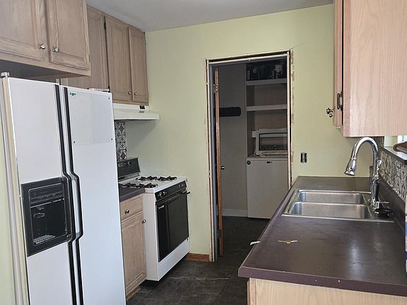Move-in ready and priced under $100K! This charming ranch features 3 bedrooms and beautiful hardwood floors throughout most of the home. The kitchen appliances and washer are included in the sale. Enjoy a spacious backyard ideal for family gatherings, kids, and pets, featuring a partially fenced yard for added privacy. A large detached garage/outbuilding with a workbench offers an ideal space for a workshop or extra storage. Immediate occupancy is available, high-speed internet is ready, and the location provides convenient access to the expressway.