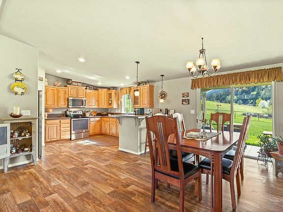 Impeccably maintained single-level home bordering Little Canyon Creek in Peck, Idaho. This 3-bed, 2-bath property boasts split bedrooms, an oversized master suite, breakfast bar, spacious pantry, and a covered patio with unobstructed canyon views. Perfect for horse enthusiasts or homesteaders, this property is situated at the confluence of Little Canyon and Big Canyon Creek with year-round flow and water rights available. The sale includes a second buildable parcel with a build pad and power nearby. Enjoy a peaceful, private setting with a low elevation, large shop, carport, productive well, chicken coop, fenced garden, fruit trees, and a fully fenced backyard. A rare find that checks all the boxes!