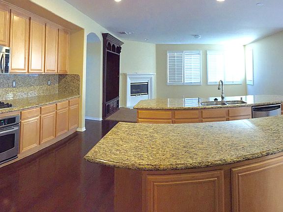 Beautiful Rancho Vista Pool & Spa house with RV parking near the golf course! Located at the end of the cul-de-sac this 6 bedroom, 3,300 SqFt home has a back yard oasis with views to die for, and an in-ground pool and spa, a custom BBQ/outdoor food prep island, and Gas fire-pit. Enter to vaulted ceilings and a grand staircase. Downstairs enjoy a formal living and dining room, Large family room, Expansive upgraded kitchen with recessed led lighting, large Butler's pantry, granite counters, 2 huge islands, coffee nook, and wine nook, breakfast bar and large dining area. There are two large bedrooms and 1.5 bathrooms downstairs. Upstairs features a Large master bedroom with private bathroom and large walk in closet. The hallway has a built in desk. Upstairs laundry room is large for convenience. Upgraded plantation shutters enhance the house. Close to Shopping, Mall, Parks, and 14 freeway. Bonus: Exterior trim was recently painted & 220 in the garage, newer Pool Heater & filter, and the pool was recently blasted/cleaned. Hurry to this Rancho Vista Gem.