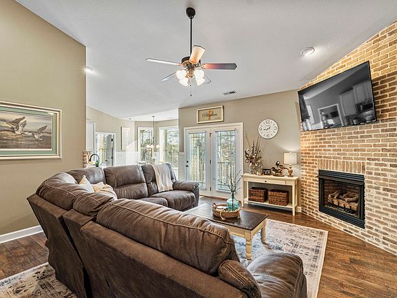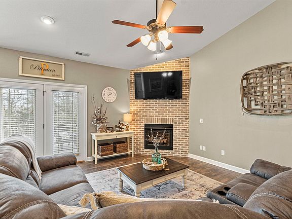 All the fine details have been perfected for you at 4076 Berry Mill Road! Seller has spent 2022 making over this ten year old home to provide a turnkey home for a new owner’s enjoyment. This impressive renovation makes you feel like you are moving into a brand new home! You enter onto a front porch with a “haint blue” ceiling, stone columns, all overlooking an impeccable landscape and hardscape. The front door has a transom over it, and you enter into a foyer with views into a formal dining room with wainscoting. Most of the home has newly installed luxury vinyl plank floors. The living room, kitchen, and dining room all share a vaulted ceiling. The living room gas log fireplace has a new brick surround, and there is a powder room that is easily accessible for your guests with a new vanity. The kitchen has granite countertops, new sink, new stainless appliances, brick backsplash, and pantry closet. A breakfast area has a bay window and fabulous view of the double decker massive deck and pool! The master suite will be a perfect retreat after a long day! The granite countertops on the dual vanities, the stunning custom tile shower, and tile flooring all give a luxurious vibe to the master bath! On the other side of the home, there are three bedrooms (one has double closets), and a full bath. This secondary bath has shiplap with hooks for towels, granite countertop, and a large cabinet perfect for towels and other linens. A bonus room located over the garage has plenty of headroom, and can be used for many purposes. The attached garage has a custom tin wainscoting and built-in bar that remains with the home. A detached garage has a separate driveway to access it. It is 32’x28’ with an eight-foot lean-to on the left side. All stained concrete floors, full power, water is at the corner of the building, work bench, and loft for additional storage. Seller is willing to sell additional refrigerators, freezers, and any furniture on a separate bill of sale. No homeowners association, set back off the road for maximum privacy, and trees for additional buffer - you will love everything this home offers!